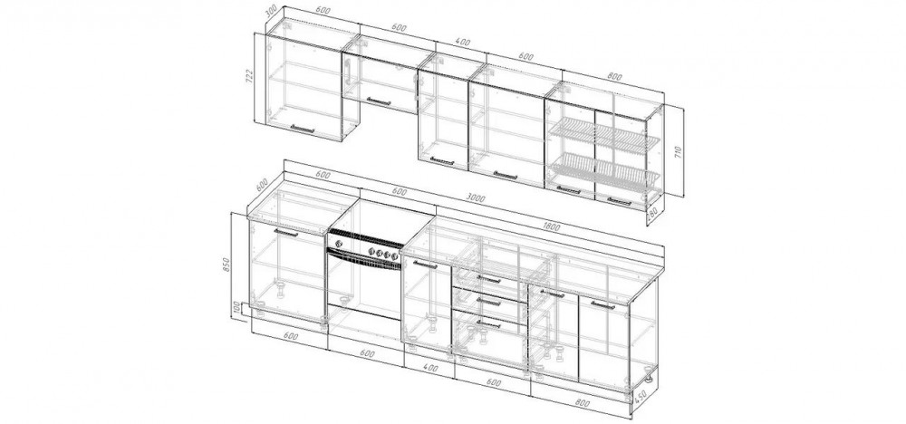 Размеры (Ш*В*Г)(мм): 3000*0*600